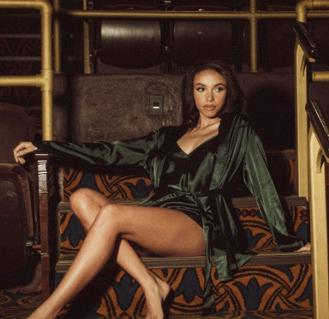 Satin Short Robe | Forest Green