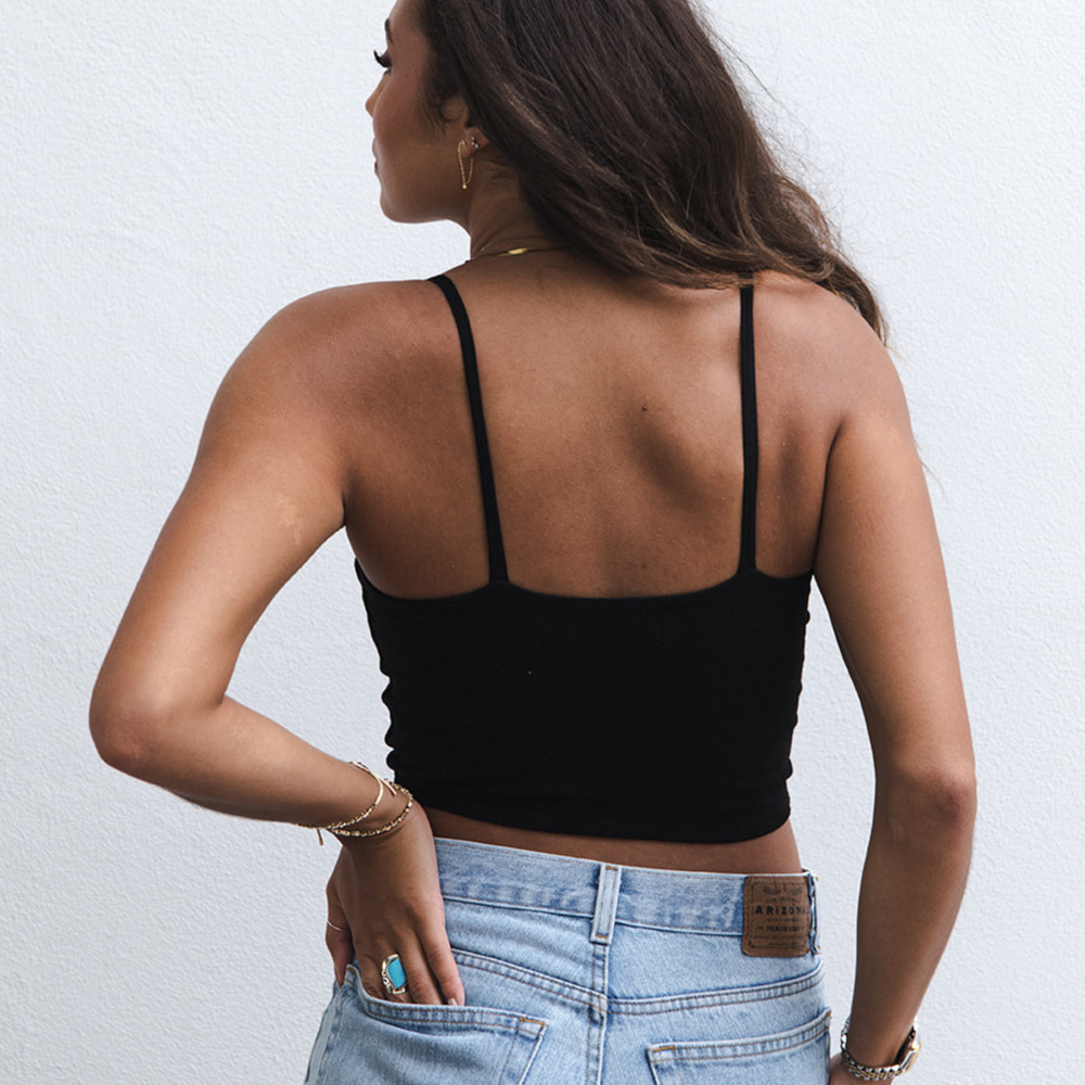 Luxurious and substantial, the Kyla Double Layer Crop can be worn as a crop-top or long-bra depending on the desired use. Rich in color and texture, this cropped cami holds you in without making you feel like you're holding your breath!