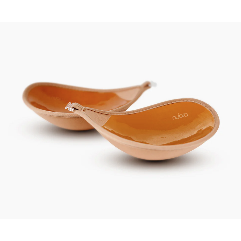 THE original patented strapless, backless adhesive bra. Freedom from straps, underwires, bands and conceals nipples. The perfect featherweight solution for everyday tops or special occasion tops and dresses that require a creative no-show solution.