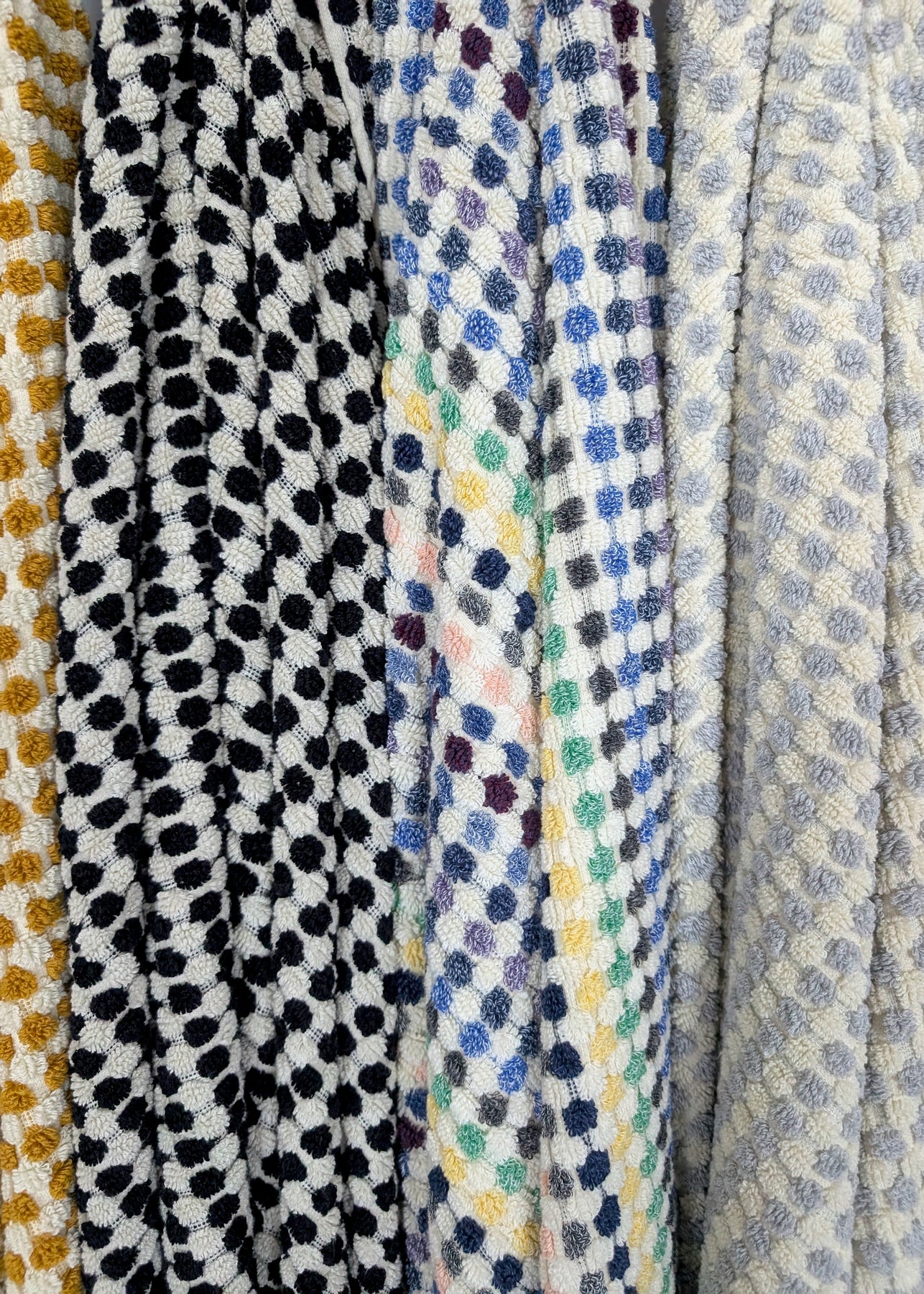 Each towel in the Bloom Collection is adorned with a circular raised pattern in a curated color palette, offering a soft yet sculptural feel under your hands. Finished with hand-tied tassels and decorative selvage edges, these towels bring artisan texture and warmth into your bathroom. The plush, weighty feel makes them perfect for anyone who craves comfort, quality, and a touch of tactile elegance.