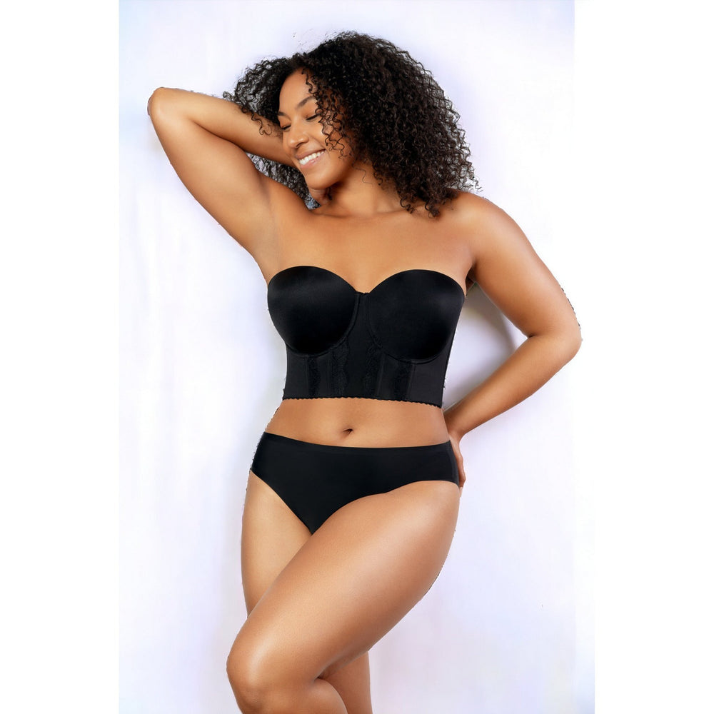 Be fabulous and feel secure with this sophisticated silhouette! Featuring lightly moulded cups with seams that contour your curves and silicone elastic that keeps everything in place, you can focus on enjoying the festivities. Plus, its longline back closure offers extra support for fuller figures and busts, leaving you feeling comfortable and confident!