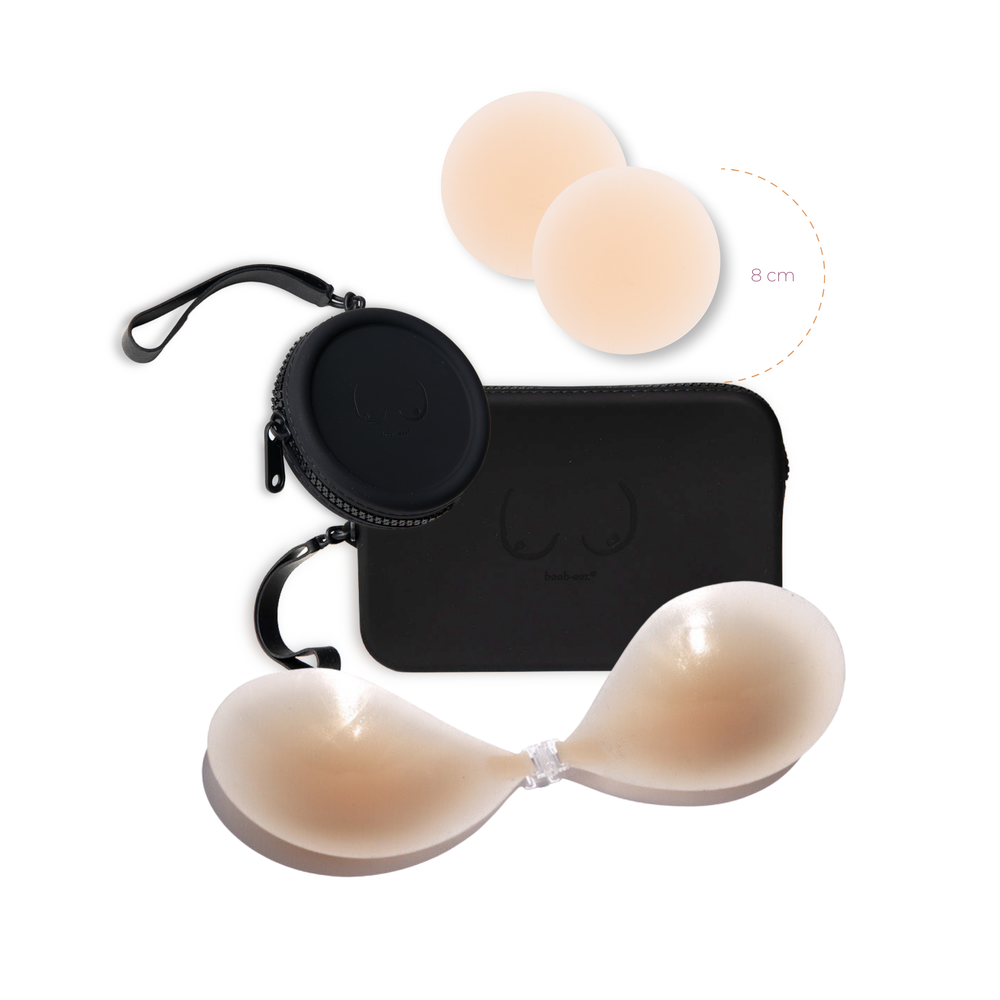 Expand the lifetime of your pasties with this revolutionary capsule: Boob-eez® #1 best-selling silicone nipple covers + a fan favorite: our 100% silicone, seamless stick-on bra + ALL NEW travel cases made from kitchen-grade silicone!